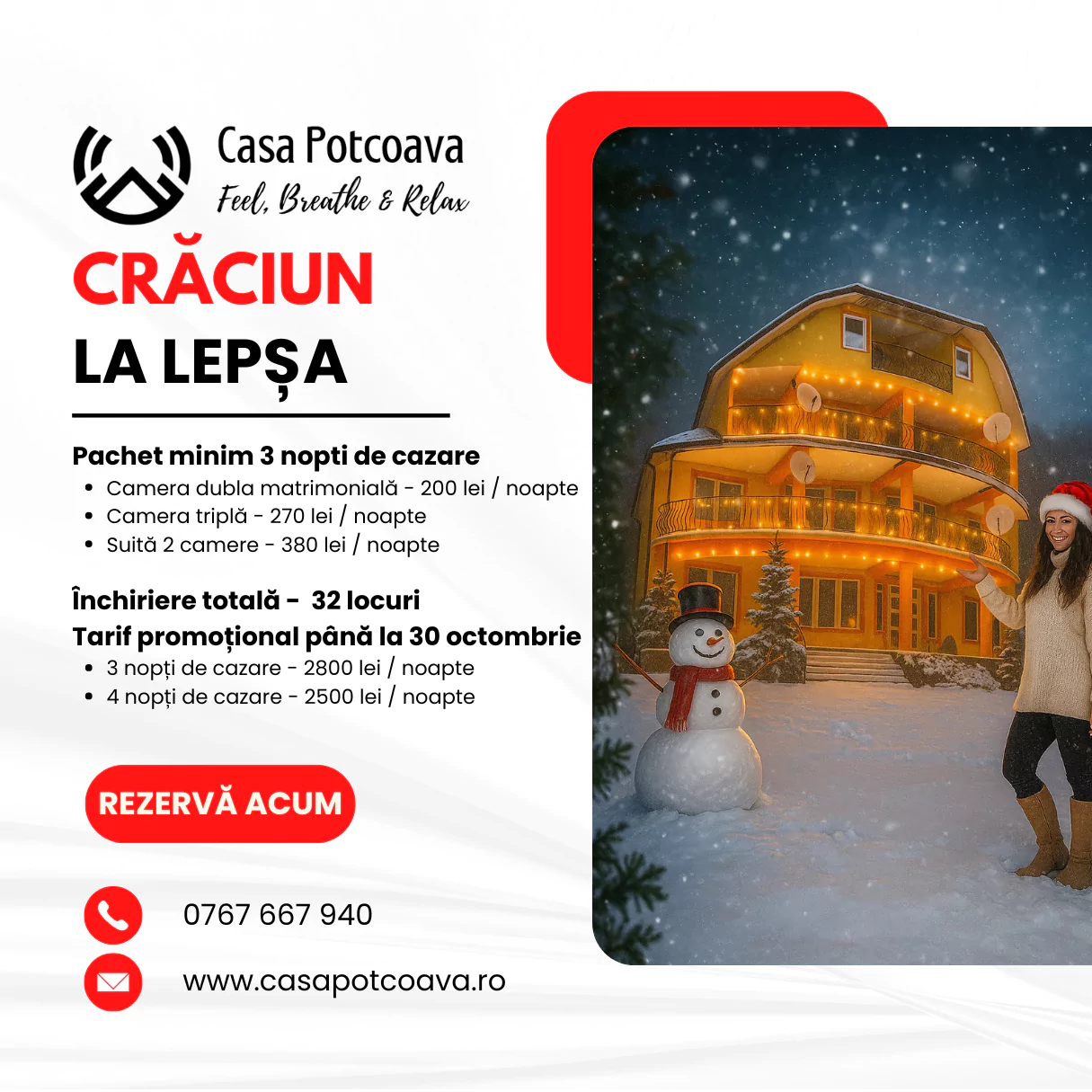 👉 Rezervă-ți acum Crăciunul de poveste la munte și profită de tariful promoțional până la 30 octombrie!